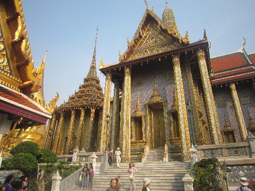 The place is filled with many tourists. It's a very famous temple in Thailand and called "The Wat Phra Kaew". This place was used to be a royal palace and Kings had lived here. This is a very sacred place for Thai. When you enter here, you are not allowed to wear skimpy outfits, such as a camisole and a short skirt. This picture is only a part of the temple. There are more temples and buildings to look around here. |