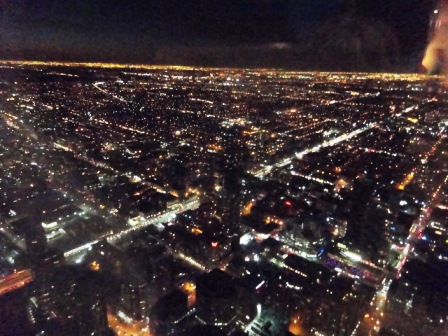 I took this picture in CN tower. I went up by the high-speed elevator and was moved by this view. You