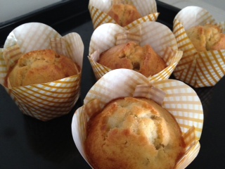 This picture shows "banana muffins.'' It is easy to make one. I just mix ingredients and bake them. We can enjoy the aroma of banana.
