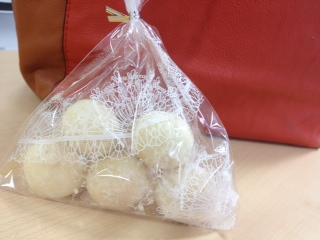 This picture shows "snow ball cookies.'' These cookies fall to pieces in your mouth. I like that.