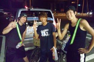 At a convenience store in Hyogo. university students cheered us up!!!