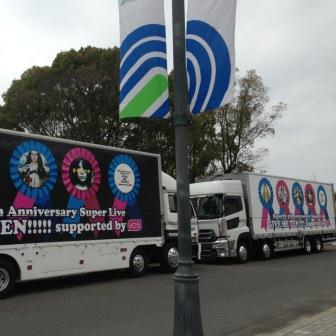 ![]() 2013.3.23 At Osaka-jo Hall These are tour trucks! | ![]() 2013.5.12 At Hattori-Ryokuchi(Osaka) This concert was an open-air concert |