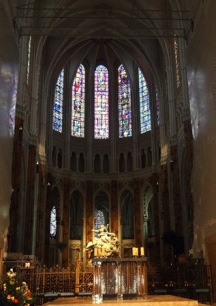 Chartres Cathedral is a French Gothic architecture.  It is located in the medieval town of Chartres.  The stained glass windows were so beautiful it drew sighs of admiration.