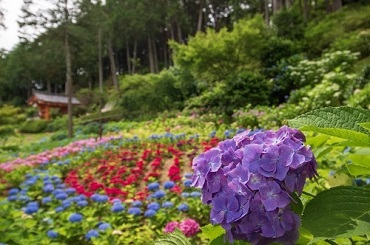 Visitors enjoy the beauty of colorful hydrangeas blooming in June.
