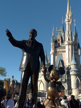 Disney Castle with Walt Disney and Mickey Mouse.