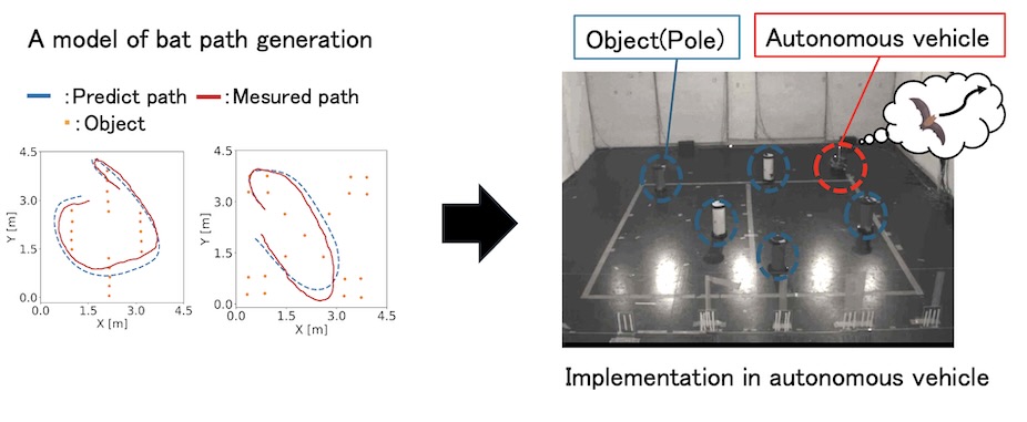 We plan to implement this "bat decision-making model" in an autonomous vehicle to consider and infer the factors behind bat decision-making, and by comparing it with other navigation methods,