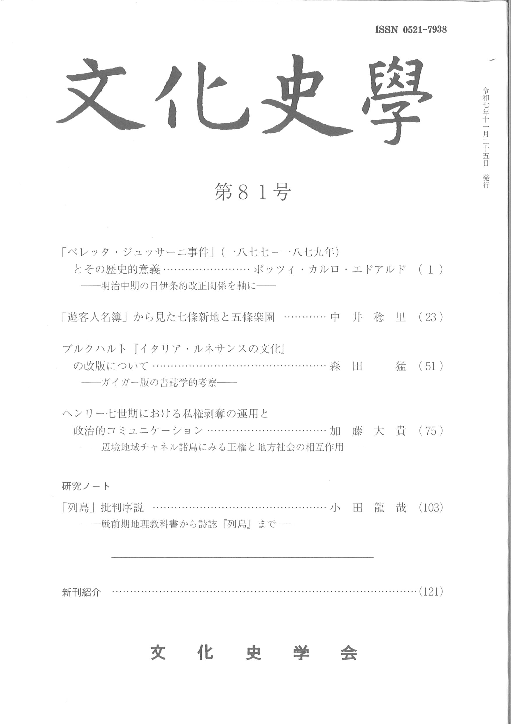『文化史学』最新81号